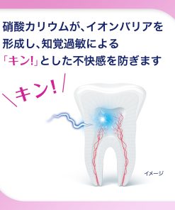 - 硝酸カリウムが、カリウムイオンとなって歯髄神経のまわりにイオンバリアを形成し、不快感や痛みを防ぐ