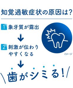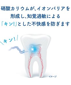 ●効能・効果は歯がしみるのを防ぐ。
