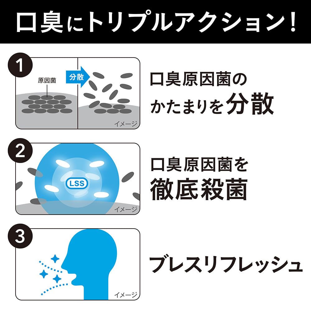2.殺菌成分LSS(ラウロイルサルコシンNa)が口臭原因菌を殺菌し、口臭の発生を防ぎます。