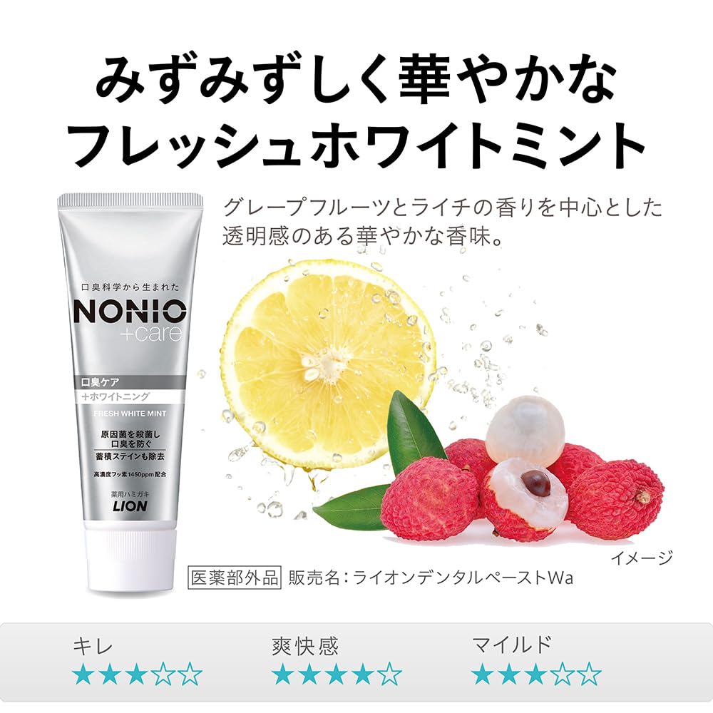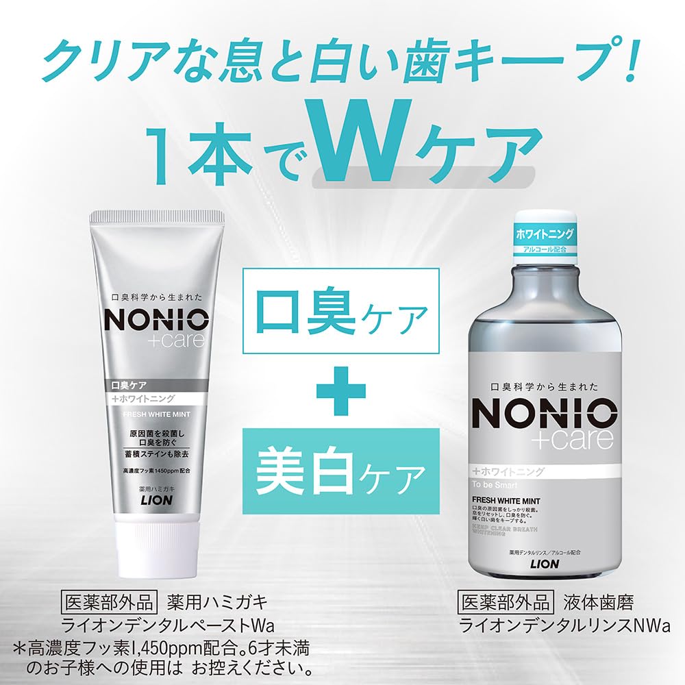 口臭科学から生まれた「NONIOプラスホワイトニング ハミガキ」は、徹底的な口臭ケアができ、落としにくいステインまでしっかり除去してツルツルで輝く白い歯へ導くハミガキ。